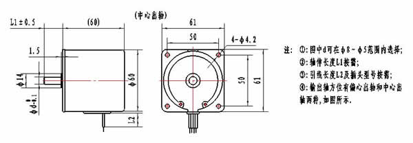 注:該電動機(jī)分普通型與大轉(zhuǎn)矩型,電壓可做成24V、110V、220V,輸出軸軸徑(不大于ф8)、軸徑、軸伸可根據(jù)客戶要求特制。