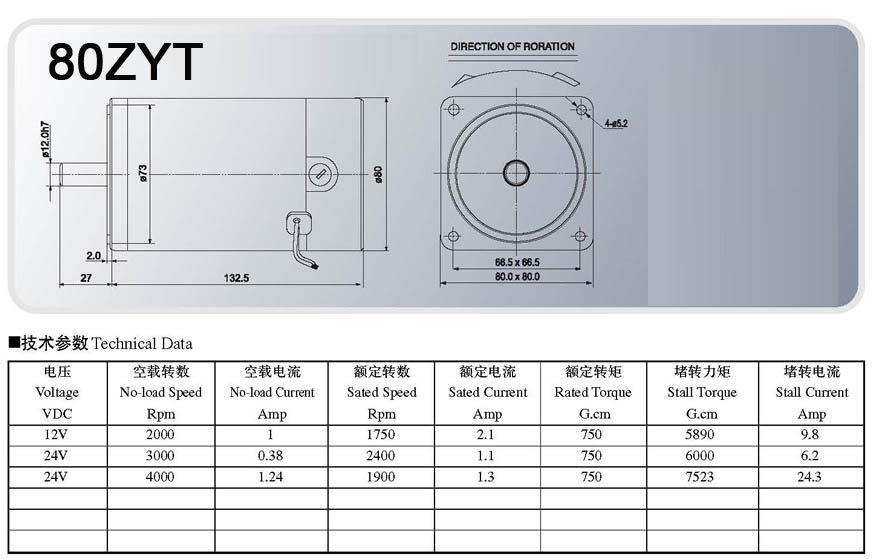 產(chǎn)品型號:70ZYT,80ZYT直流電機